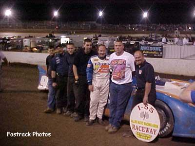 Pevely, MO (April 19, 2003) NASCAR star Ken Schrader made his first trip to I-55 Raceway with his U.M.P. Late Model this season and made it one to remember. Schrader, who is co-owner of I-55 Raceway, put on a dominating performance. Schrader started eighth in his heat race and took the lead with just two laps remaining and went on to victory. Schrader started on the pole for the dash and led the entire distance. Ken Schrader Twenty-three U.M.P. Late Models took the green flag in the feature event, with Schrader setting the pace. Schrader immediately jumped out front and moved to the high side. Tim Ratajczyk settled into second place using the low side. Kevin Gundaker soon moved past Ratajczyk around the top and began to chase down Schrader, while Mark Oller pressured Ratajczyk on the low side. Ed Dixon made a fast charge to the top five from his tenth place starting position, but soon the caution was waving for Dixon who broke a drive shaft yoke and pulled to a stop in turn four. On the restart, Schrader and Gundaker continued around the high side and Oller moved past Rajaczyk on the low side and began to chase down Gundaker. Schrader went on to victory by a half straight-away distance over Oller who edged out Gundaker for the second spot. Gundaker was third, Ratajczyk fourth and Dean Hoffman completed the top five. Scott Weber continues to be the dominant force in the U.M.P. Modified division as he swept the night's events. Ray Walsh was able to apply pressure to Weber late in the feature event, but Walsh soon found himself battling to hold on to second place. Walsh lost that battle as Rusty Griffaw edged him by a half-car length at the checkered flag. Rich Whaley came home fourth and Eric Mabery fifth. Scott Weber Some new faces found themselves running up front in the AARA Sportsman division. Todd McGraw picked up the win in dominating fashion as he swept the night's events as well. Bob Prince led a four car battle for second, with Ron Imm, Jr. taking third. Eric Rudd in his first season in the Sportsman division was fourth and Scott Stuppy was fifth. Stan Cain completed the night of sweeps as he swept in the Wannabee division. U.M.P. Late Models Heat 1: 1. 99 Ken Schrader 2. 9B Chuck Baird 3. 77 Clay Baumann 4. 82 Billy Laycock Heat 2: 1. 67 Mark Oller 2. 112 Tim Ratajczyk 3. 1A Justin Allgaier 4. 50 Ed Dixon Heat 3: 1. 11Z Brian Collins 2. 11 Kevin Gundaker 3. 1D Dean Hoffman 4. 1DW Denny Woodworth Dash: 1. 99 Ken Schrader 2. 112 Tim Ratajczyk 3. 67 Mark Oller 4. 11 Kevin Gundaker Feature: 1. 99 Ken Schrader 2. 67 Mark Oller 3. 11 Kevin Gundaker 4. 112 Tim Ratajczyk 5. 1D Dean Hoffman 6. 26 Billy Faust 7. 11Z Brian Collins 8. 77 Clay Baumann 9. 1A Justin Allgaier 10. 8 Kyle Steffens 11. 9B Chuck Baird 12. 28 Don Klein 13. 1DW Denny Woodworth 14. 87 Ken Rumble 15. 71 John Bohn 16. 83 Bill Masters 17. 82 Billy Laycock 18. 70 Rich Lawson 19. 50 Ed Dixon 20. 46 Paul Belken 21. 2J Dave Jumper 22. 441 Brian Wolfmeier 23. 47 Danny Haynes U.M.P. Modifieds Heat 1: 1. 89 Bob Bittle 2. 16 Rusty Griffaw 3. 18 Brent Thompson 4. 14 Leroy Haney Heat 2: 1. 00 Lance Kobush 2. 56 Kevin Epperson 3. 12 Tom Ratajczyk 4. 41 Larry Hull Heat 3: 1. 4J Scott Weber 2. 59 Rich Whaley 3. 45M Eric Mabery 4. 29 Jeff LeBaube Heat 4: 1. 99 Brian Wolfmeier 2. 1W Ray Walsh 3. X1 Dave Sandage 4. 21 Dennis Richards Dash: 1. 4J Scott Weber 2. 89 Bob Bittle 3. 16 Rusty Griffaw 4. 1W Ray Walsh Semi #1: 1. 58D Dave Shepard 2. 444 Matt Simpson 3. 29C John Campbell 4. 8X James Reed 5. 32 Eldred Winebaugh 6. 16K Kenny Kennedy 7. 58 Eugene Hoffman 8. 4B Neil Wade, Jr. Semi #2: 1. 166 Brian Worley 2. 3R Leon Rakers 3. 14K Loren Knox 4. 23 Dylan Sharp 5. C4 Chris Soutiea 6. 22X Clint Eckenrodt 7. 87 Gary Haynes 8. 2 Todd Ferber Feature: 1. 4J Scott Weber 2. 16 Rusty Griffaw 3. 1W Ray Walsh 4. 59 Rich Whaley 5. 45M Eric Mabery 6. 56 Kevin Epperson 7. 99 Brian Wolfmeier 8. 00 Lance Kobush 9. 12 Tom Ratajczyk 10. 9W Doug Wood 11. 18 Brent Thompson 12. 21 Dennis Richards 13. 14 Leroy Haney 14. X1 Dave Sandage 15. 29 Jeff LeBaube 16. 166 Brian Worley 17. 3R Leon Rakers 18. 95B Jim Beishir 19. 41 Larry Hull 20. 89 Bob Bittle 21. 6 Ray Wagner 22. 8M Kirk Murphy 23. 58D David Shepard 24. 444 Matt Simpson AARA Sportsman Heat 1: 1. 3P Bob Prince 2. 24 Paul Bauman 3. D5 Dave Jenkins 4. 111 Zac Parks Heat 2: 1. 10 Todd McGraw 2. 00 Scott Stuppy 3. 50 Eric Rudd 4. 18 Pat Chalmers Heat 3: 1. 75 Ron Imm, Jr. 2. 8 Ed Lowry 3. 21 Brad McKinnon 4. 86 Doug Kim Dash: 1. 10 Todd McGraw 2. 00 Scott Stuppy 3. 75 Ron Imm, Jr. 4. 3P Bob Prince Feature: 1. 10 Todd McGraw 2. 3P Bob Prince 3. 75 Ron Imm, Jr. 4. 50 Eric Rudd 5. 00 Scott Stuppy 6. 8 Ed Lowry 7. 111 Zac Parks 8. 18 Pat Chalmers 9. 31P Clint Prince 10. 66 Darren Holland 11. 24 Paul Bauman 12. 19 Jimmy Cummins 13. 21 Brad McKinnon 14. 7 Craig Wodicker 15. 86 Doug Kim 16. 18 Buddy Lowry 17. 4 Ricky Horton 18. D5 Dave Jenkins 19. 98 David Bardin 20. 411 Marty Heck DNS. D40 Ed DeMille DNS. 144 Brian Eaves DNS. 01 Steve Borgetti DNS. 93 Jeff Honea AARA Wannabees Heat 1: 1. 6 Joe Gruhala 2. 57 Don Hoffman 3. 2 Dan Schmidt 4. 58 Sharon Hoffman Heat 2: 1. 72 Stan Cain 2. 3 Mike Robinson 3. 01 Robert Denny 4. 10 Homer Mooney Feature: 1. 72 Stan Cain 2. 57 Don Hoffman 3. 6 Joe Gruhala 4. 3 Mike Robinson 5. 8 Pat Brewer 6. 21Z Jeff Zohner 7. 21 Dave Heinrichs 8. 58 Sharon Hoffman 9. 8 Ken Williams 10. 01 Robert Denny 11. 99 Robbie Hoffman 12. 2 Dan Schmidt 13. 188 Gary Price 14. 10 Homer Mooney 15. 77 Ron Lyons DNS. 27 Joel Potter