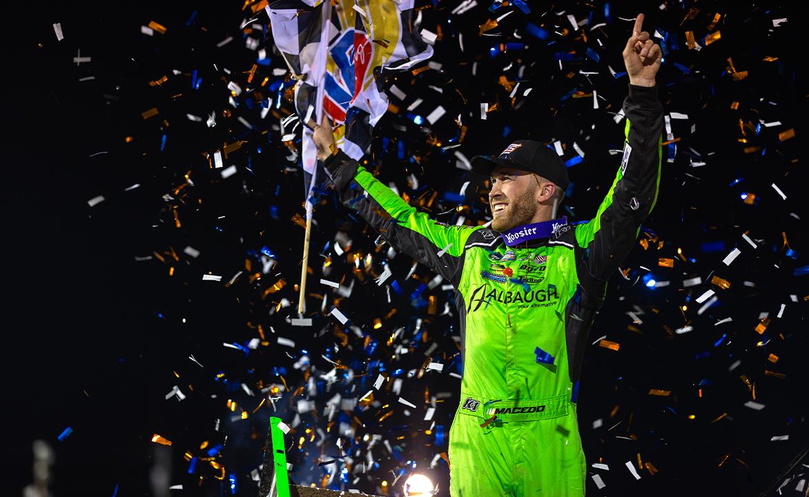 The two swapped sliders. They countered with crossovers. They gave the crowd a masterful display of Sprint Car racing. A late caution set up a green-white-checkered restart, and Macedo had just enough to hold on by a few tenths of a second to get the win with his Jason Johnson Racing team.