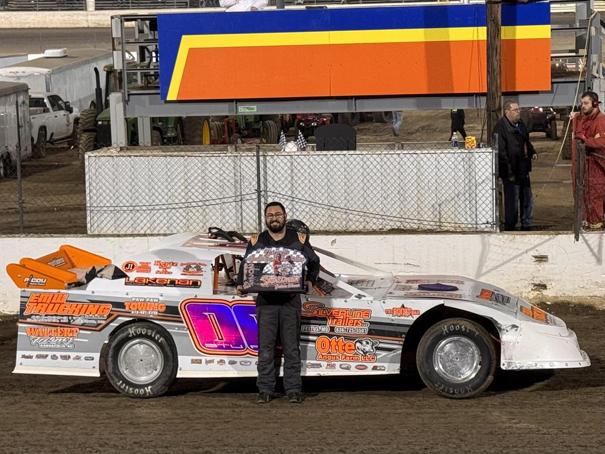 A Feature 1 (20 Laps): 1. 99-Hunt Gossum[1]; 2. J82-Treb Jacoby[12]; 3. 36W-Kenny Wallace[3]; 4. 94-Austin Rettig[6]; 5. 14-Rick Conoyer[15]; 6. 7N-Tim Nash[4]; 7. 51-Timmy Hill[10]; 8. 24S-Jacob Steinkoenig[5]; 9. 1A-Steve Meyer Jr[9]; 10. 1D-Dean Hoffman[25]; 11. 10X-Jim Black[8]; 12. 17V-Mike Vanderiet Jr[16]; 13. 23-Dylan Sharp[18]; 14. 2-Dennis Richards[19]; 15. 21D-Randy Dickman[17]; 16. 16-Shawn Deering[21]; 17. 13-Donovan Hutchinson[24]; 18. 3G-Haleigh Gross[11]; 19. 84G-Gary Gross[20]; 20. 98-Joshua Hawkins[2]; 21. 15B-Matt Brucato[13]; 22. 21-Dustin Fallert[22]; 23. 14S-CJ Springer[14]; 24. (DNS) 9-Ken Schrader; 25. (DNS) 42-Clint Young